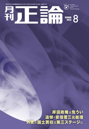 産経新聞社は、日本の針路を考える論壇誌、月刊「正論」の2023年8月号を6月30日に発売します。主な特集は「岸田政権は危うい」です。岸田政権の経済政策、財政政策、少子化対策などについて産経新聞特別記者の田村秀男氏、政策シンクタンク代表の原英史氏、作家・ジャーナリストの河合雅司氏らが問題点を浮き彫りにしています。連載コラムでは、産経新聞編集委員の宮本雅史氏による若手官僚の覆面座談会「訥行(とっこう)塾」のほか、政治評論家で日本戦略研究フォーラム会長の屋山太郎氏の新連載「ケンカ太郎、再び」がスタートするなど、読み応えのある内容となっています。