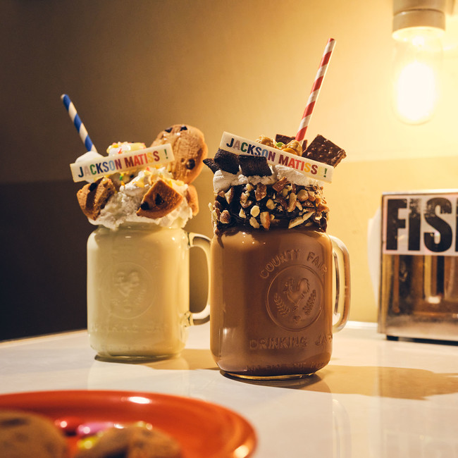 JACKSON MATISSE!のカラフルなロゴからインスパイアされた、豆乳がベースのオリジナルシェイク。デザート感覚でボリュームたっぷりなスウィートドリンクです。