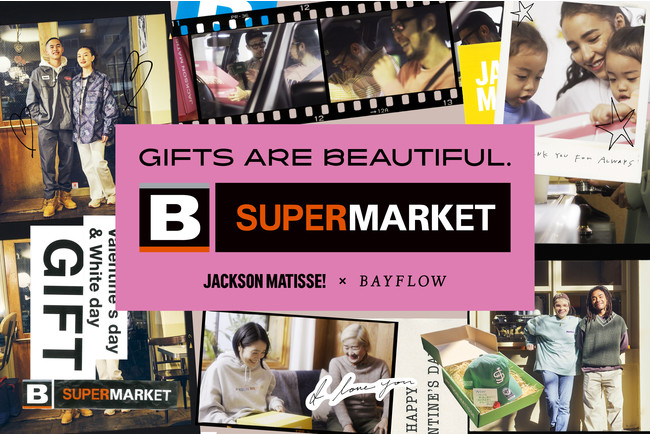 「Play fashion!」をミッションに掲げる株式会社アダストリア(本部:東京都渋谷区渋谷2-21-1、代表取締役会長:福田三千男)が展開するBAYFLOW(ベイフロー)と「米国・古着・Surf・Skateboard」をカルチャーにしたブランド「JACKSON MATISSE!(ジャクソンマティス)」のコラボライン『B SUPERMARKET(ビースーパーマーケット)』が、ギフトシーズンに向けたコレクションを2月4日(金)から発売いたします。