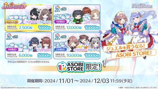 ASOBI STOREでプリズムジュエルを販売中!1周年限定!最大220%ジュエル増量商品も登場!