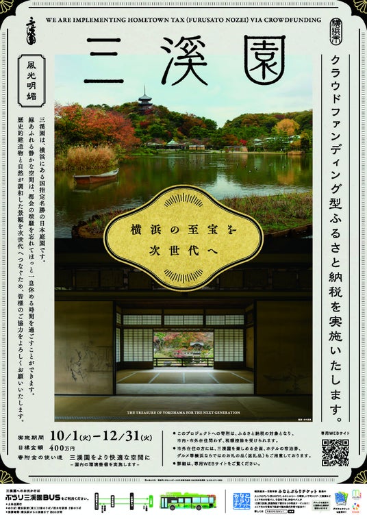 横浜市では三溪園を次世代に継承していくための新たな取組として、クラウドファンディング型ふるさと納税を実施いたします。