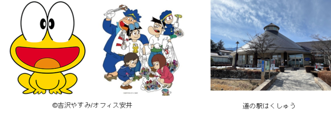 海なしやまなし発!海ごみZEROプロジェクト実行委員会は、山梨県出身の作者・吉沢やすみさん作の人気マンガ「ど根性ガエル」とコラボし、今年度、作品の主要キャラクター・ピョン吉の資源ごみ回収ボックスを製作、11月に設置と調査を行いました。その第2弾として、北杜市の「道の駅はくしゅう」に設置し分別回収状況の調査を行います。これは、日本財団が推進する海洋ごみ対策事業「海と日本プロジェクト・CHANGE FOR THE BLUE」の一環で実施するものです。