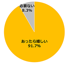 外食をするときの定食などの箸休めの小皿や小鉢について、「基本的に箸休めの小皿や小鉢は必要ない」と答えた人はわずか8.3%で、91.7%の人があったらうれしいと感じるメニューがあることが分かりました。箸休めのなかであったらうれしいもの1位はポテトサラダで52.2%。2位は卵焼き(44.8%)、3位は生野菜(39.5%)という結果になりました。