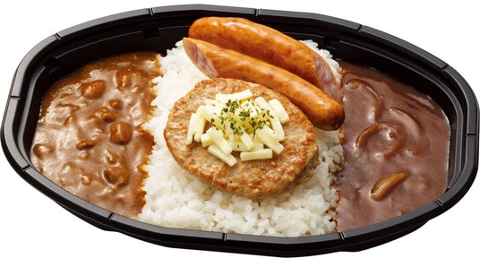 【内容】カレーとハヤシが1つのプレートに入った弁当です。別々に食べても、混ぜても美味しい仕立てで、ごはん量約250g、総重量約550gとボリュームもたっぷりの2ドおいしい商品です。