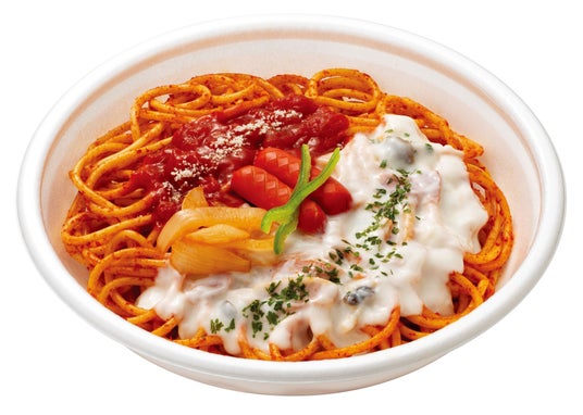 【内容】麺量約280g、総重量約470gとボリュームある仕立てのパスタです。トマトのソースとホワイトソースの2種類のソースがかかった2ドおいしい仕立ての商品です。
