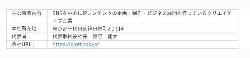 プロットは、主に昨今市場規模が拡大しているショート動画の一つである、SNSを中心としたショートアニメという分野にて、事業を展開しています。数多くのIPをスピーディーに創出し、ショートアニメ事業やwebtoon事業、IPビジネス展開事業を推進し今までにないメディアミックスを大規模に展開することを目指している企業です。