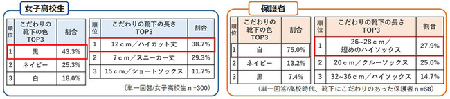 ■令和JKと保護者が選ぶ「靴下トレンド」の上位は、対照的な結果に!
