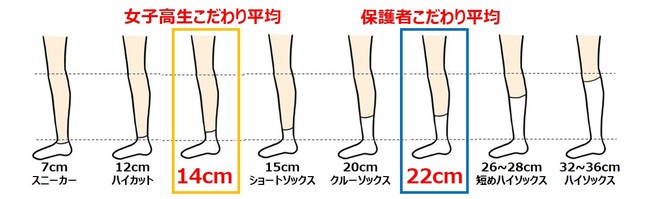 ■靴下の長さ平均は、女子高校生が“14cm”、保護者“22cm”