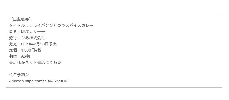 3月下旬、ぴあ株式会社より、スパイス料理研究家の印度カリー子さん最新刊『フライパンひとつでスパイスカレー』を発売することが決定いたしました。