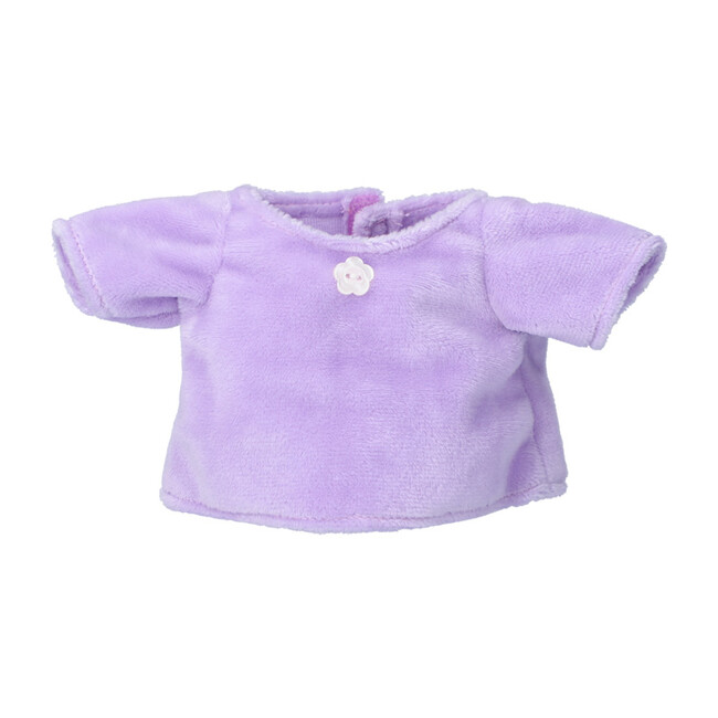 秋のお花であるコスモスをイメージしたオレンジとパープルの色味の、着せかえほわほわぬいぐるみ専用の「着せかえお洋服」です。お洋服の生地は秋以降の季節にぴったりな、あたたかみのあるベロア風生地で、お洋服の胸元にはフラワーミッフィーらしいお花型のボタンがついています。