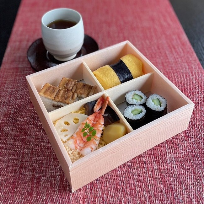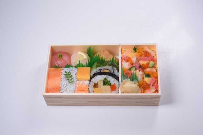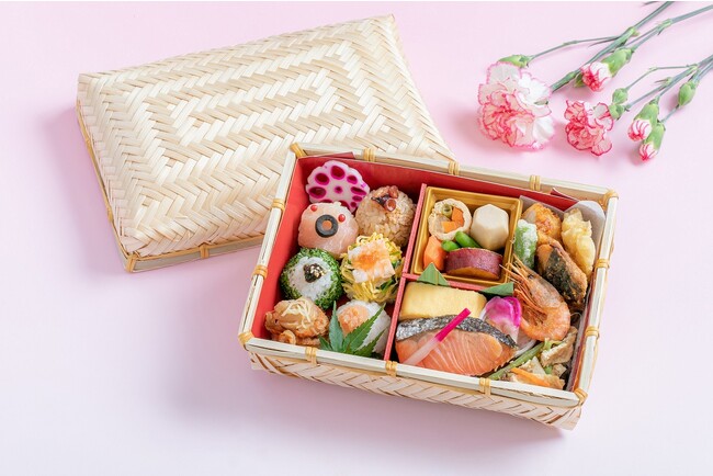 日頃の感謝の気持ちを込めて贈るお弁当。一口サイズのてまり寿司や季節のおかず、彩り豊かなちらし寿司などを盛り込んだ、母の日限定の寿司弁当です。