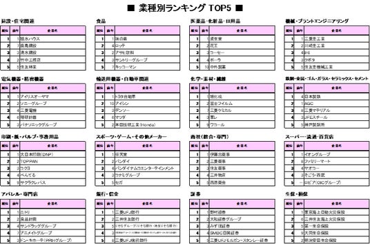 (1)トヨタ系部品メーカーのアイシン、デンソーが業種2・3位占める。ファミリーマートが業種2位に