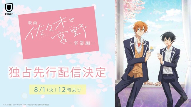 USEN-NEXT GROUPの株式会社U-NEXT(本社:東京都品川区、代表取締役社長:堤 天心)が運営する動画配信サービス「U-NEXT」は、2023年8月1日(火)より映画「佐々木と宮野ー卒業編ー」を独占先行配信いたします。