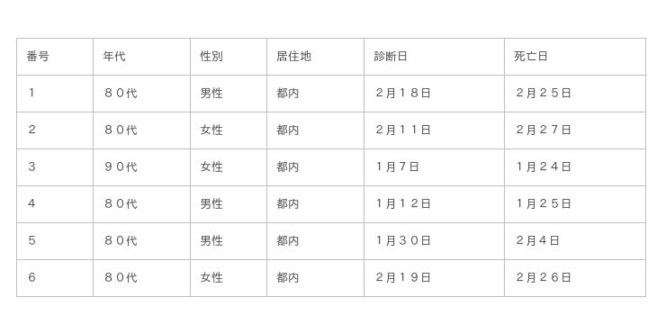 都内で新型コロナウイルスに感染した方が死亡されましたのでお知らせします。