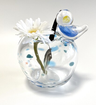 「コトリガラス くりまり」コトリ付きハート花器(セキセイブルー)5,500円 ※羽、花は属しません。