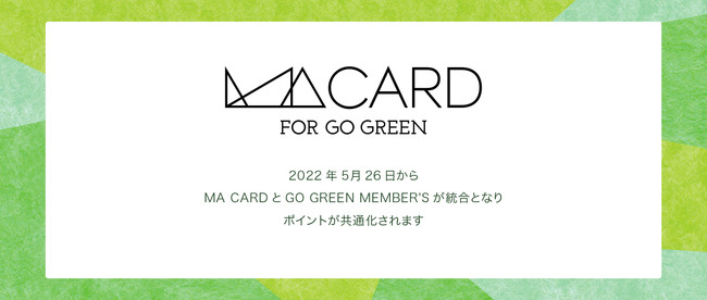 ファッション、ビューティー、フード、デザイン、不動産など多岐にわたる事業を展開している株式会社マッシュホールディングス(本社:東京都千代田区、代表取締役社長:近藤広幸)は、既存の会員サービス「MA CARD」および「GO GREEN MEMBER’S」の会員統合を行い、2022年5月26日(木)より新サービス「MA CARD FOR GO GREEN」としてリニューアルいたします。