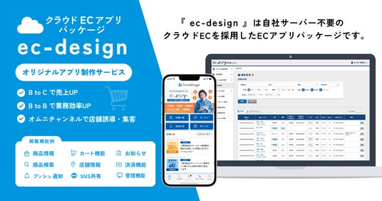 「ec-design」は、オリジナルのアプリ、ECサイトが制作できるパッケージ製品です。商品紹介、カート機能、決済機能などのEC機能のほか、販売販促を促すクーポン機能やポイント機能、スタンプ機能、スクラッチ機能、非対面での商談が可能なオンライン機能を有しています。 ■ エンドユーザーの利便性向上 パッケージの導入により、商品注文や商談を本システムから行うことが可能となるため、非対面での販売や商談が実現でき、エンドユーザーの利便性が向上します。 ■ エンドユーザーに対する自社からのアプローチ 自社からエンドユーザーへのアプローチをクーポンやポイント、お知らせ機能を活用し実施することができるため、販売促進に繋げることができます。 ■ 必要な機能をオールインワンでご提供。IBM Cloud上で動作するクラウド・サービスでのご提供となっており、企業様側でのサーバのご用意が必要ありません。また、既存の基幹システムとのデータ連携により、情報の一元管理も可能です。決済代行会社との連携機能も標準で実装されているため、必要な機能をオールインワンでご提供が可能です。