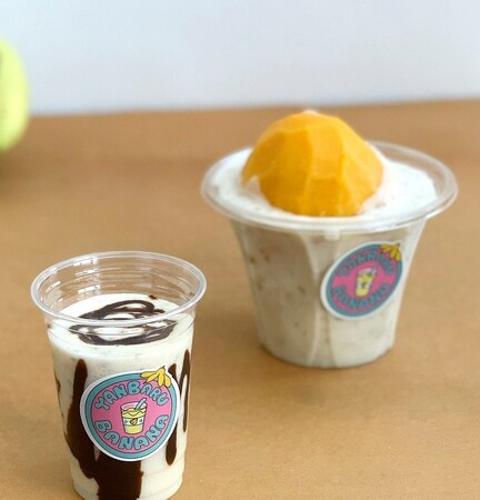 沖縄産もっちり濃厚バナナの自然な甘み!マンゴーを丸ごと入れたスムージーも。