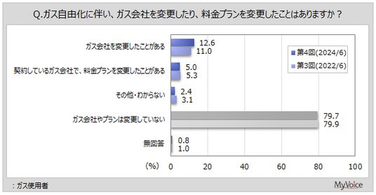 2017年4月のガス自由化に伴い、ガス会社や料金プランを変更したことあるかをガス使用者に聞きました(複数回答)。