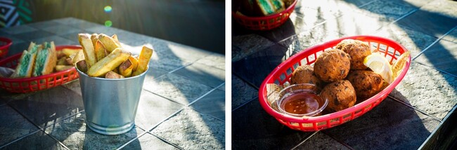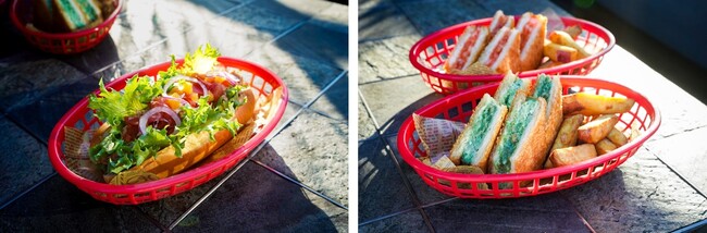 和食とのペアリングのイメージが強い焼酎。今回は、新しい焼酎の楽しみ方として、プルドポークをはさんだホットドッグや、薩摩芋のフライ、チーズが中からとろけるボール型のさつま揚げなど、洋の要素が入ったフードを提供いたします。さらに、九州地方の郷土料理「ハトシ」をアロフト風にアレンジしたフードも販売。赤のハトシには、明太子と海老のすりみを、緑のハトシには、紫蘇、青唐辛子、紅生姜、鶏のすり身を入れました。