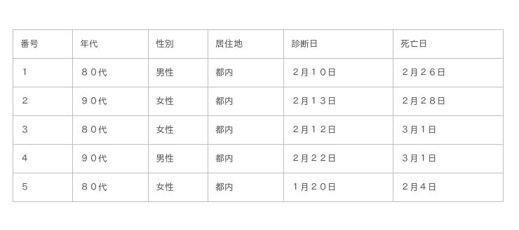 都内で新型コロナウイルスに感染した方が死亡されましたのでお知らせします。