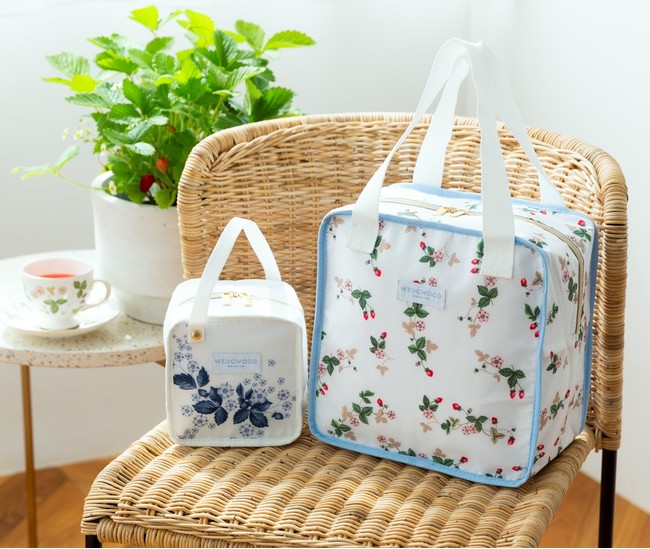 本誌限定アイテムは、大人気の「ワイルド ストロベリー」柄と「ストロベリー ブルーム インディゴ」柄を使った大小の保冷バッグ2個セット。