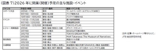 2026年に開業(開催)される主な施設・イベントは、図表7のとおりです。