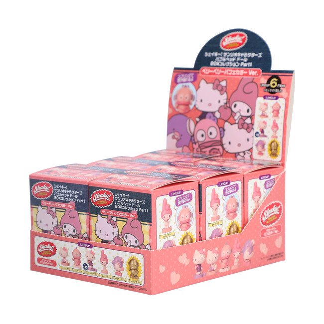 株式会社サンリオのハローキティ、ハンギョドン、マイメロディ、タキシードサムがラインアップした「Shaky! サンリオキャラクターズ バブルヘッドドールPart1」がブラインドボックスになって登場します。かわいらしいベリーピンクテイストの限定カラーで、スペシャルとして1種、ゴールドカラーのハンギョドンが含まれています。アソートボックスでご購入いただくと、全6種がコンプリートできます。ブラインドボックスだけの限定カラーをお楽しみください。