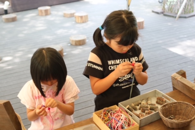 遊んで楽しむ:地元の木で作られた木のおもちゃコーナーの設置。