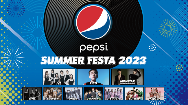 韓国国内のみならず、世界中で人気を集めるK-POPアーティストが一堂に集結するライブ『PEPSI SUMMER FESTA 2023』。今年で開催3回目となる本公演には、昨年日本デビューを果たし、若い世代から絶大な支持を集めるIVEやKep1erを始め、MONSTA X SHOWNU×HYUNGWON、ZICO、VIVIZ、VERIVERY、ONEUS、VANNER、STAYC、BLITZERSら総勢10組のグループが出演。それぞれのカラーを取り入れた多彩なステージで、ここでしか見ることのできないパフォーマンスを披露します。