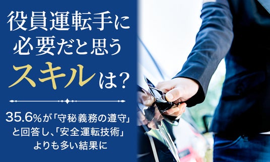 役員運転手に必要だと思うスキルについては35.6%の方が「守秘義務の遵守」と回答しており、「安全運転技術」よりも多い結果になりました。