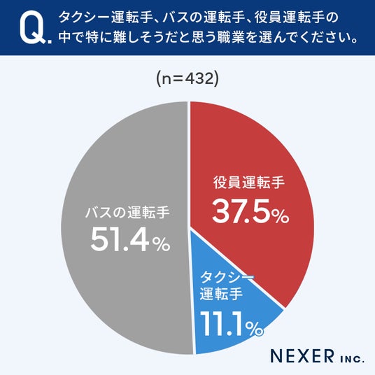 さらにタクシー運転手、バスの運転手、役員運転手の中で特に難しそうだと思う職業を選んでもらいました。