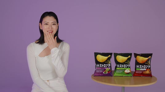 今回放映する新TVCMは、テレビや映画をはじめ、さまざまなシーンに活動の舞台を広げる俳優・モデルの三吉彩花さんを継続して起用。新商品となる「湖池屋ストロング 海苔ざんまい」にフォーカスし、湖池屋商品No.1ののり量であることを、「のりのりのり のりのりのり のりのり海苔ざんまい ストロング!」といった耳に残る軽快なダンスチューンに合わせて、クールに「のりのりのりダンス」を踊って表現いただきました。インパクトの強いCMを通じて、生まれ変わった「湖池屋ストロング」の、より濃厚な味わいを訴求しています。