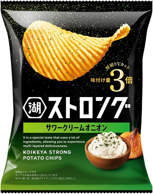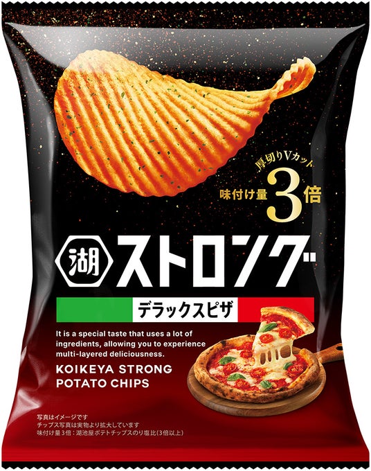 今回のリニューアルでは、濃厚な味わいや食べごたえといった商品特長はそのままに、“ジャンクで背徳感のある味わい”から“贅沢感のある濃厚さ”へフルリニューアルします。「味付け量3倍※厚切りVカット」というエビデンスをもとに、「湖池屋ストロング」を再定義。高付加価値を掲げる湖池屋が自信を持ってお届けする、贅沢感・品質感のある新生「湖池屋ストロング」へと生まれ変わります。