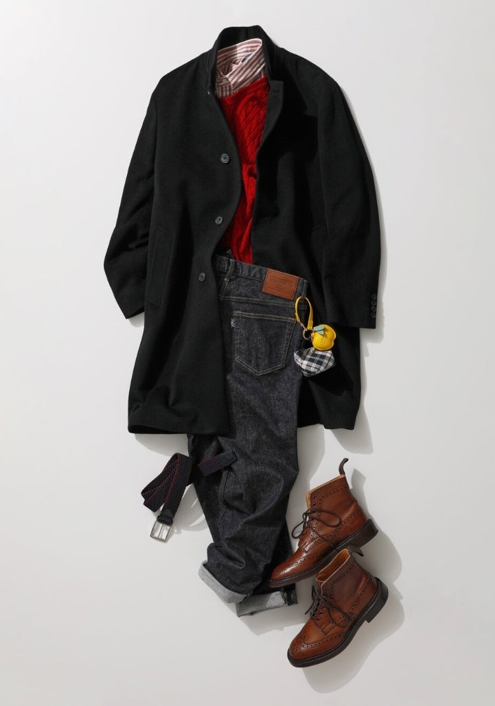 黒のカシミヤコートが放つ静かな気品に、赤ニットの鮮やかさが加わることで、落ち着きと華やかさが溶け合い、冬のコートスタイルをよりモダンに引き立てます。カシミヤだからこそ叶う、軽やかでありながら温かく華やかな装いを楽しんで。