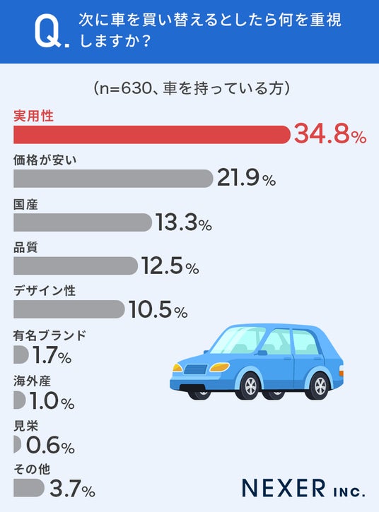 ■34.8%が、次に車を買い替える時も「実用性」を重視したい