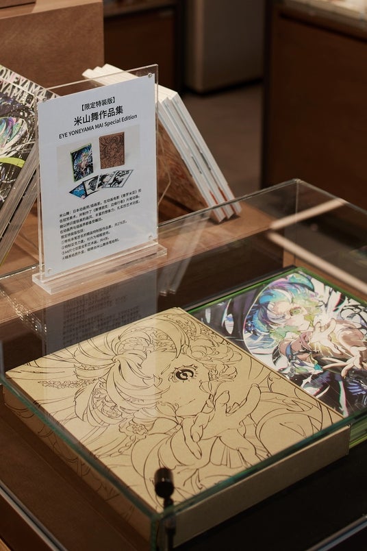 さらに「IP(知的財産)コンテンツ」も豊富に展開しています。日本のエンタテインメント文化のひとつである「特撮」コンテンツを多彩に取り扱い中国のお客様に提案するほか、アニメイラストレーター・米山舞のこれまでの作品をまとめた「限定特装版作品集」をご用意しました。作品集には直筆サインとイラストが記されており、日本ではすでに手に入らない貴重な作品です。