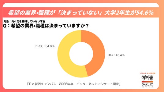 希望の業界・職種が「決まっている」と回答した学生は45.4%、「決まっていない」は54.6%となりました。