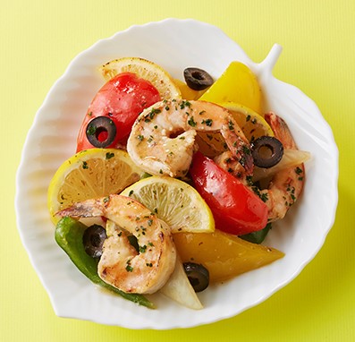 海老とパプリカを香ばしくソテーし、レモンで爽やかな味わいに