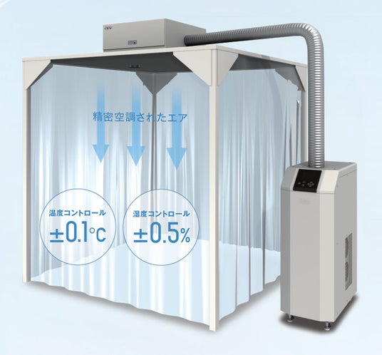 ノンフロン・省エネ 精密空調機PAUシリーズ局所空間の温湿度を精密にコントロールする空調機。対象空間を「温度コントロール± 0.1°C」、「湿度コントロール± 0.5% RH」に制御。