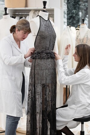 シャーリーズ・セロンは、ボックスガーデンの刺繍、フェード加工のシルバーとスモーキークリスタルのマイクロチューブにきらめくブラックシルクチュールのカスケードが施された、2024年春夏 オートクチュール コレクションのロングドレスを纏いました。1250時間が費やされ、繊細な刺繍がほどこされたあと、アトリエで750時間の工程を経てドレスが完成に導かれます。 ディオール アトリエのエクセレンスを体現したサヴォワールフェールの詳細をソフィ―・カレによる撮り下ろし写真からご覧ください。