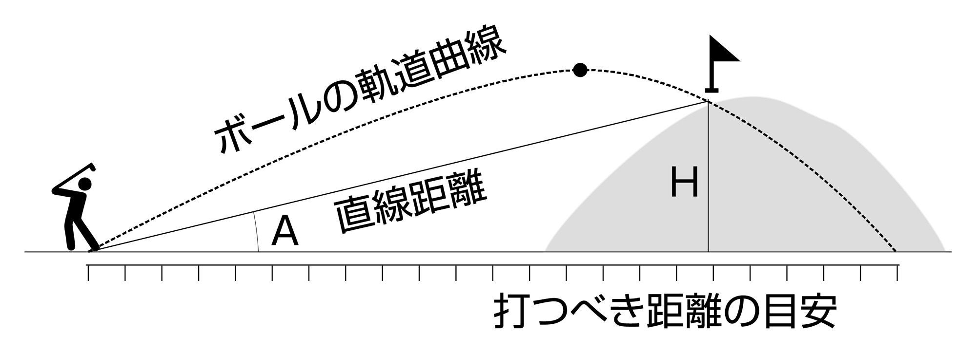 コースの起伏を考慮した打つべき距離の目安、角度を計測