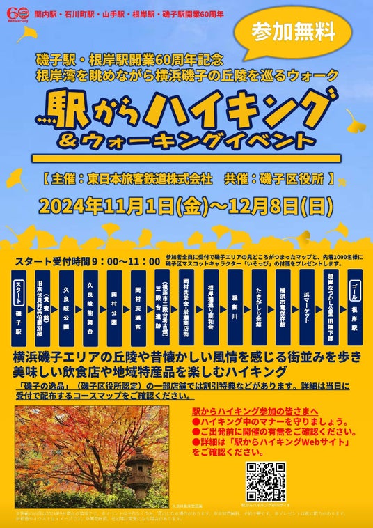 参加方法:受付時間内に、磯子駅改札口でコースマップを受け取りください。各自でスタートします。(事前申し込み不要・参加費無料)