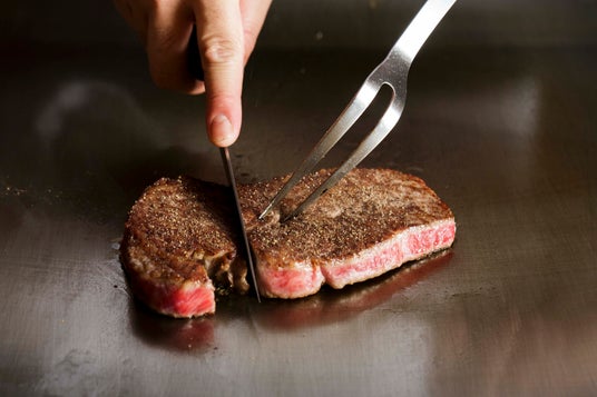 「人生最高の日に食べたい高級ステーキ」:山彦のカウンター席にてシャトーブリアンが焼かれる様子を動画にしています。