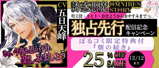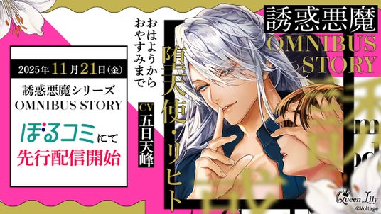 株式会社ボルテージ(本社:東京都渋谷区 代表取締役:津谷 祐司)は、シチュエーションボイスドラマレーベル「Queen Lily」の人気シリーズ「誘惑悪魔」より、誘惑悪魔シリーズ OMNIBUS STORY『堕天使・リヒト ~おはようからおやすみまで~』(CV.五日天峰)を電子コミックストア「ぼるコミ」にて11月21日(金)より先行配信を開始したことをお知らせいたします。
