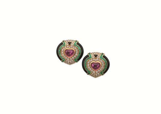 イヤリング GD x オニキス x ルベライト x エメラルド x DIA (1989年 制作)