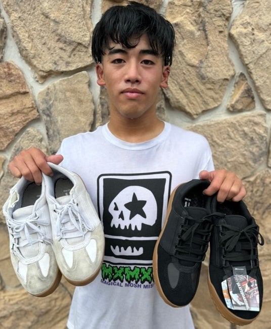 本製品は、日本の老舗安全靴メーカーである丸五との技術提携により、高い機能性と高品質な商品を低価格での販売を両立させた革新的な一足です。2022年鵠沼海浜公園スケートパークで開催された日本オープンの滑りをInstagramに投稿したところ、丸五の担当者から「うちの靴履いてくれているね」とDMが送られてきたことがきっかけでサポートとスケートシューズ開発に携わることになりました。