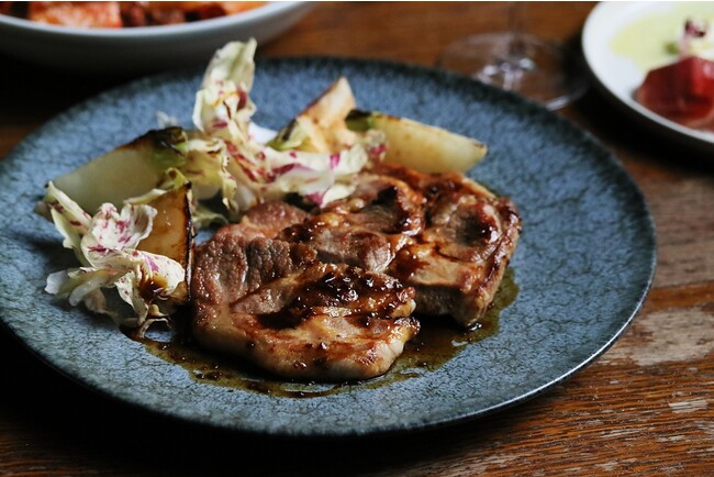 ・ハーブ三元豚のロティ 旬野菜を添えて シェリービネガーソース