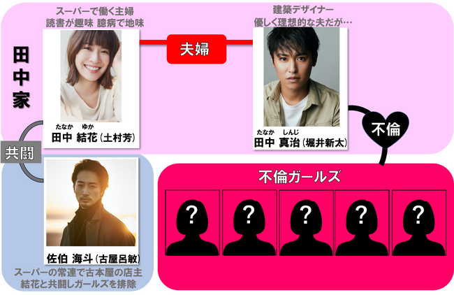 話が食い違う二人に疑念を抱いた結花は、その夜、夫の携帯を見てしまう。するとそこには5人の女性との不倫のやり取りが――。愕然とする結花は、海斗(古屋呂敏)と共闘し夫の不倫相手を特定し排除していく。