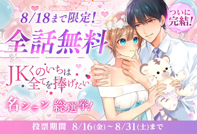 投票で推しシーン1位に輝いたページの複製原画が当たる豪華プレゼント企画のほか、なんと投票開始から3日間は最新話まで全て無料で読める超お得なキャンペーンも実施! 大人気作品の完結特別企画をお見逃しなく!